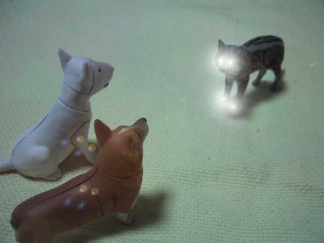 「さあ!ミーちゃん、トコさん、下がって!近くに居ると 巻き添えで君たちもバラバラになっちゃうよ!」 ミーちゃんとトコはチャッピーのそばを離れた コーギー「危険な能力かも知れないワン!」 ブルテリア「くそう、2匹で挟み撃ちにしてやるワォン!」 コーギー「いや、下手に動かない方がいい! スキを見て同時に攻撃ワン」 次へ
