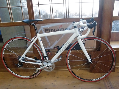 アルミロード![]() 工房赤松で製作して頂いたオーダーフレームのロードバイク 2010年8月納車 アルミフレーム、カーボンフォーク、メインコンポはdura-ace7900 ペダル込みで約7.0kg 軽量パーツをいろいろ盛り込んだヒルクライム仕様 周りから「奥さんはロードに乗ったらもっと速くなれる」と散々言われたので 河合がその気になって自分のアルミ号と一緒に製作依頼 4年ほど乗りましたが小径車の方が本人に合っているようで 現在はほとんど乗っていませんw |