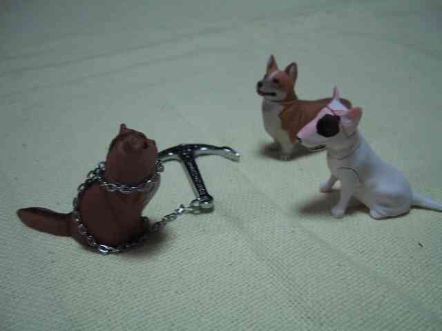 どうやらコーギー(左)とブルテリア(右)が ネコを捕まえて脅しているようだ。 「素直に言う事聞かないからだワン!」 「ここは俺たち犬族のナワバリにするワン!」 「でも先に住んでたのは私たちニャ!」 次へ